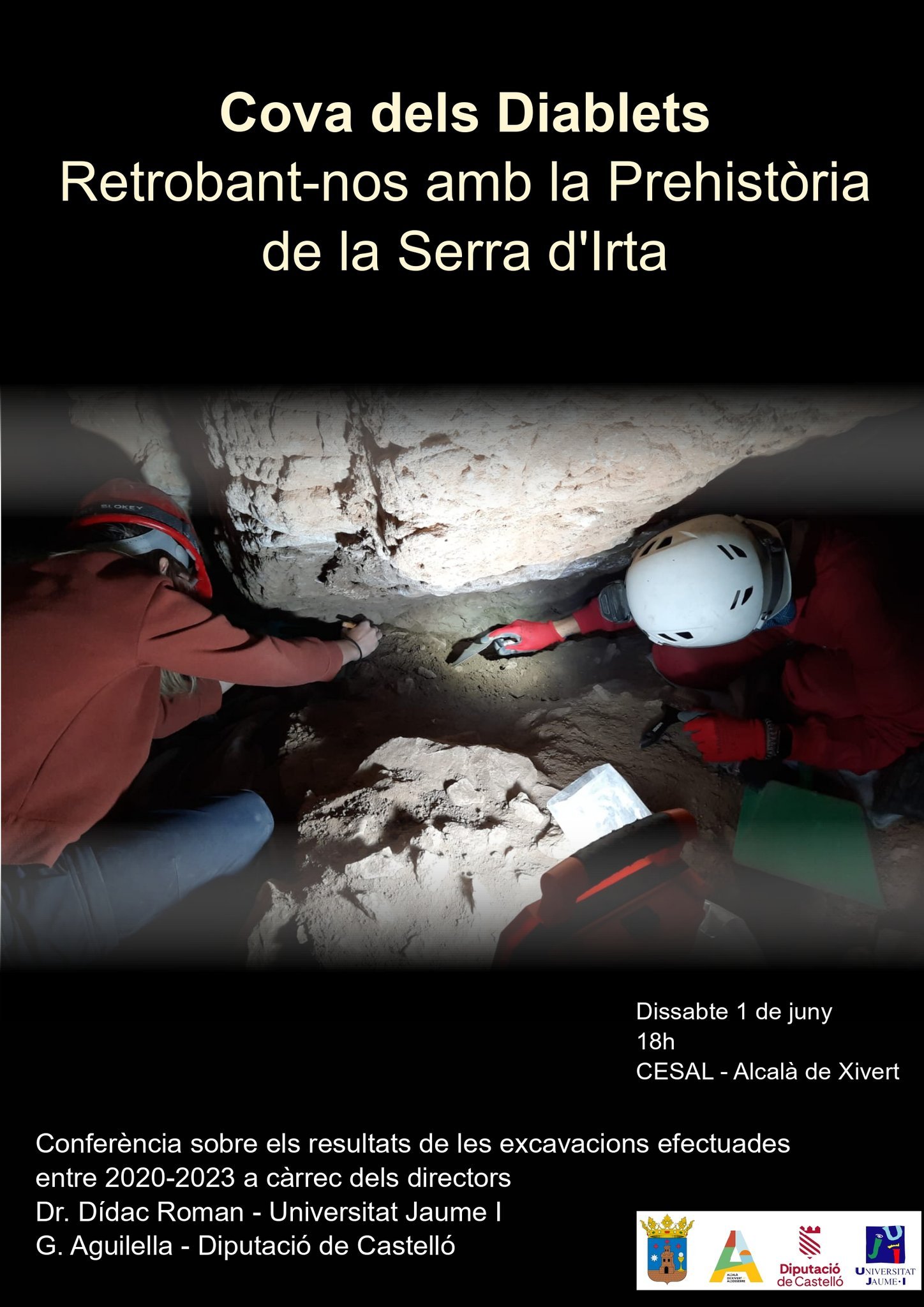 18.00h Conferència sobre el resultat de les excavacions efectuades a la Cova dels Diablets, entre 2020 y 2023, a càrrec dels directors arqueològics