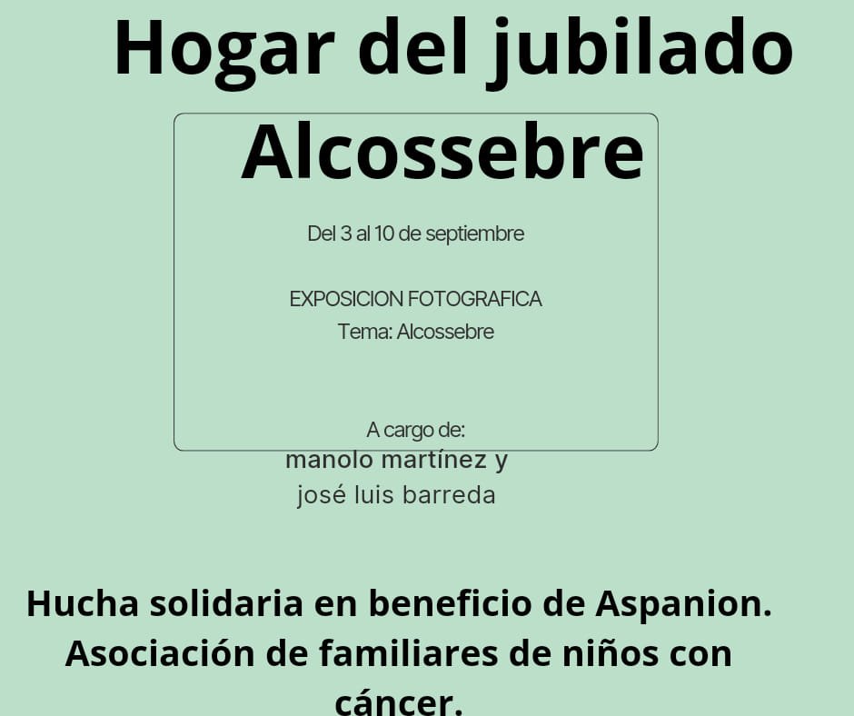La associació de Jubilats d’Alcossebre organitza aquesta exposició benéfica anomenada «Hucha solidaria» en beneficio de Aspanion, l’associació de familiars de xiquets amb càncer.