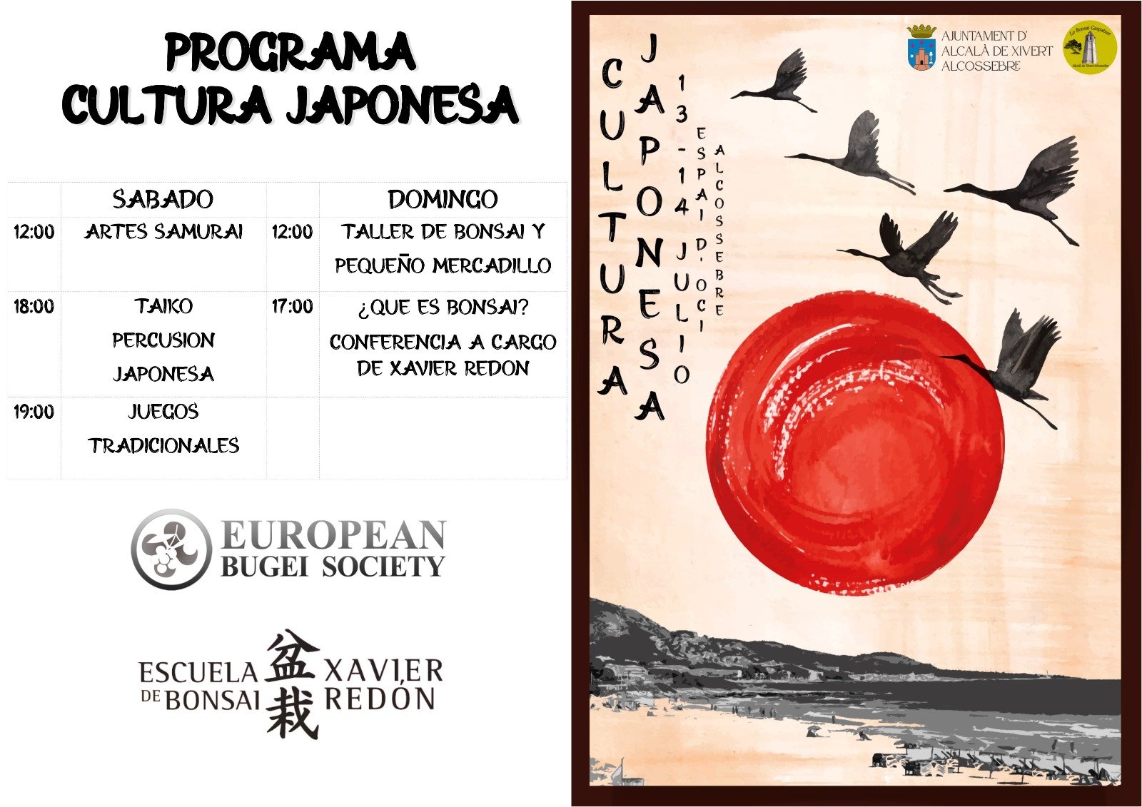 Programa Cultura Japonesa. Arte samurai, percusión, juagos, taller de bonsai, exposición.