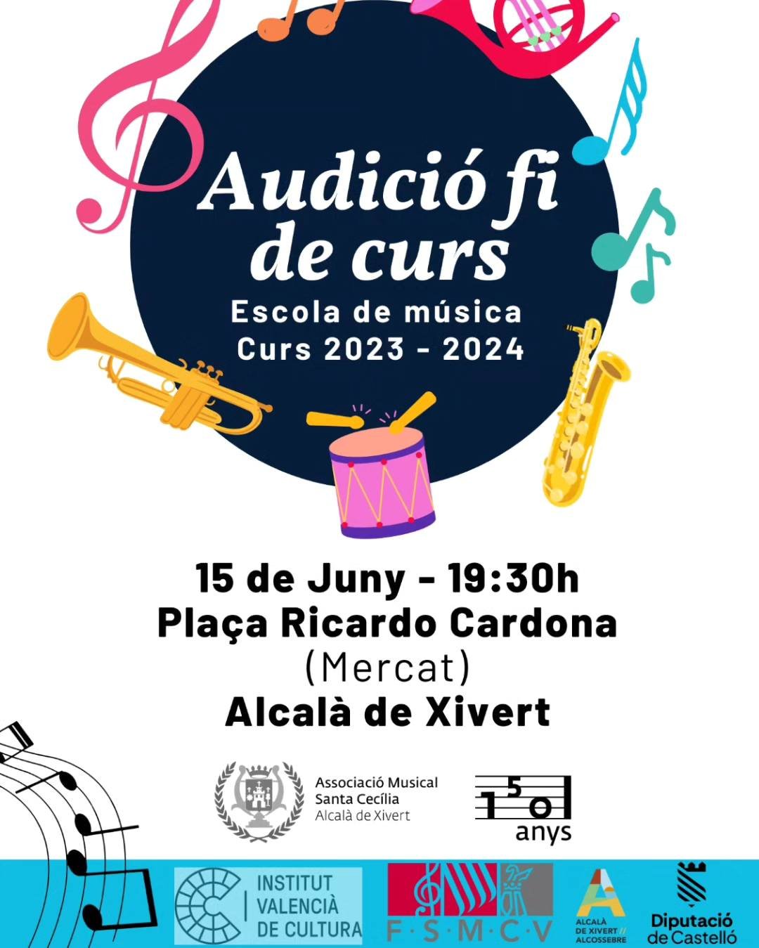 L'Associació Musical Santa Cecilia d'Alcalà de Xivert, vos espera a tots i totes per gaudir d’un dia molt musical amb familiars i amics. Comencem amb paelles, seguim amb tardeo per la vesprada i acabem el dia amb concert i festa, amb jocs pels més menuts i un bingo solidari